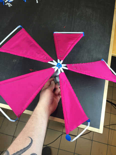 Montamos nuestro molino de viento en el techo y en el video de lase se puede ver girar :)