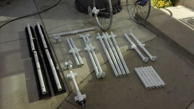 -2 ruedas de bicicleta (yarda de la chatarra/craigslist). Tratar de encontrar el diámetro de las ruedas con ½". De lo contrario, 3/8" diámetro obras.