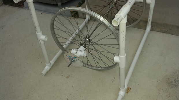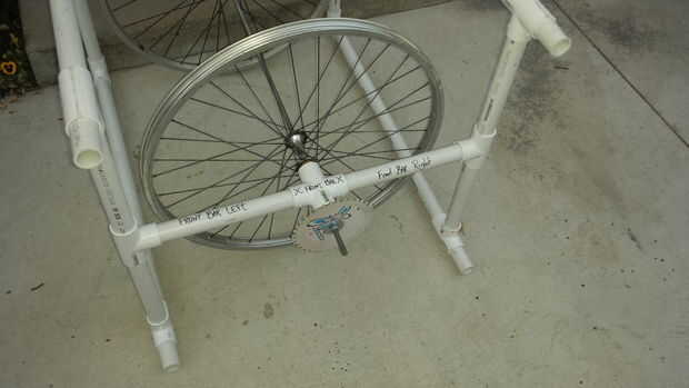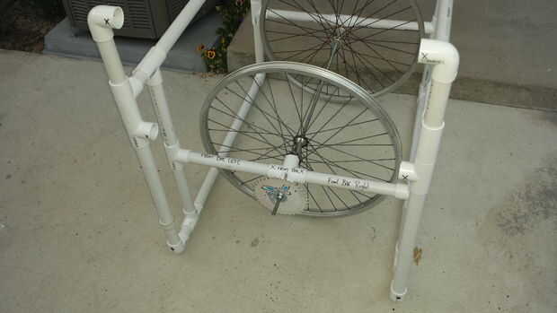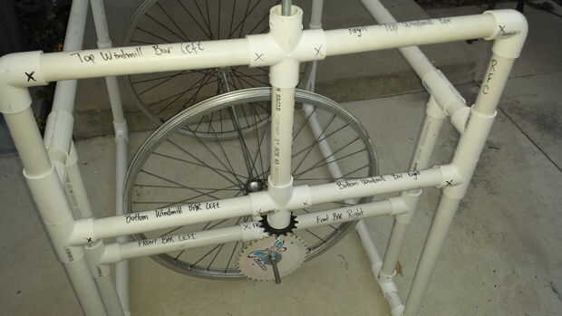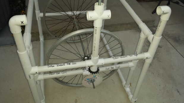 Construir la estructura de PVC. La barra y rodamientos determinará cuánto deben ser los 4 lados. Precisión es importante. Medir tres veces, corte una vez. Ayuda a saber que encuentra la reducción dentro de las guarniciones de PVC 1,125" desde el borde, así que considere al cortar las piezas.