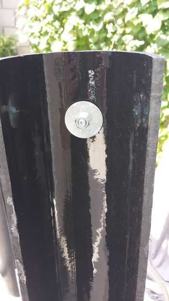 Utilice pernos, tuercas y arandelas de compresión para bloquear todos los tubos de PVC en la parte posterior de las mitades del ABS.