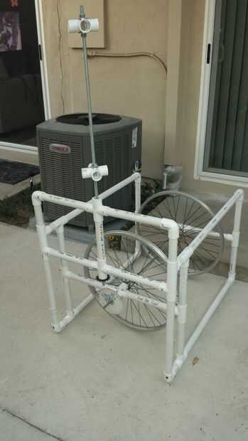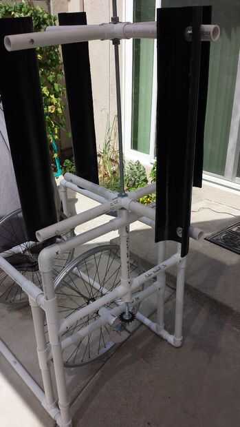 Nota: Asegúrese de que las cuchillas giren libremente. Si golpea el marco de PVC, baje el rodamiento de la varilla. Esto debería plantear el molino de viento.