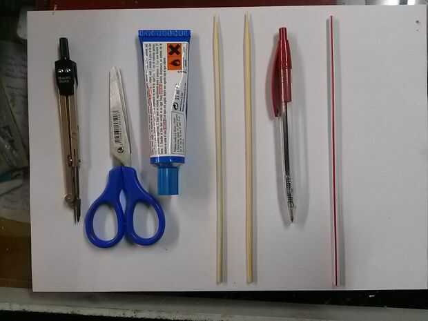 Compas de las Naciones Unidas (o un vaso, o algo redondo), tijeras, pegamento, 2 palos (tipo de los se utilizan para hacer brochetas o algo similar), boligrafo o lapiz, refresco de párr de una caña de las utlizadas, hoja de papel y cartón de alguna caja,