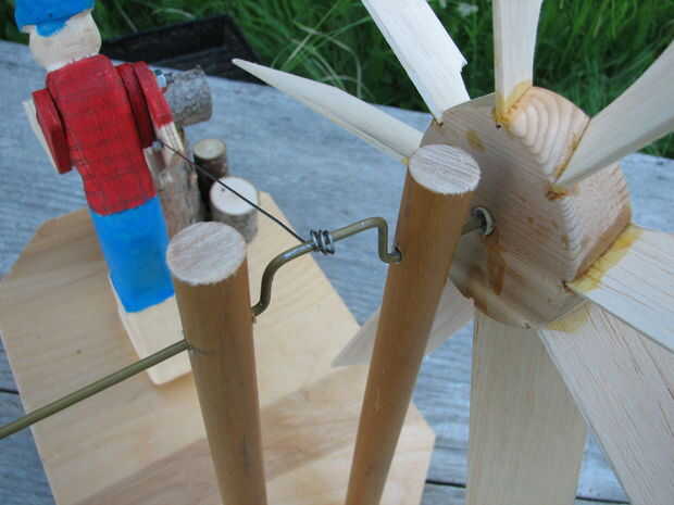 Conectar todos los cables y tal donde lo necesitan y coloque la figura de modo que el alambre es perpendicular de la percha. Ahora pegue la figura en el lugar y añadir cualquier decoración que desee. Decidí hacer algunas pequeñas ramas como troncos que se corte el picador de madera.