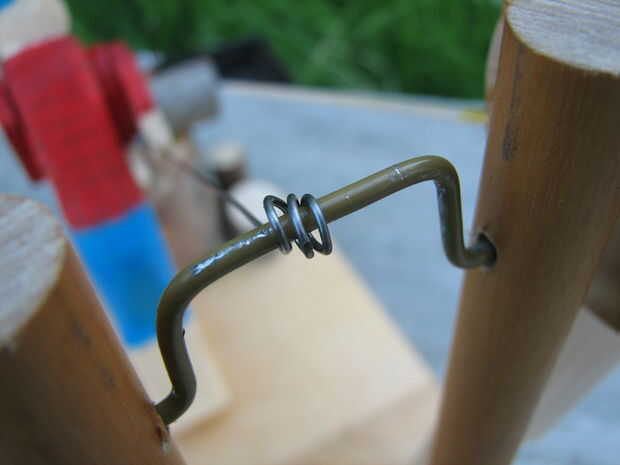 Medir 6 pulgadas de alambre de la percha y cortarlo. Ahora hacer un 90 grados de la curva en el centro (no tiene que ser demasiado exacto). Hacer otra curva de 90 grados hacia abajo aproximadamente 1/2 pulg., hacer su próximo 90 grados doblar una pulgada lejos de su pasado uno. La última curva será nuevamente 90 grados y 1/2 pulgadas arriba de la curva anterior. La pieza de alambre debe tener forma de U en medio de ella ahora.