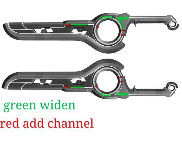 La profundidad de los canales depende de las luces que está utilizando. Originalmente, iba a utilizar algunos EL alambre que lo compré en Amazon por unos $3. Es muy fina para no hacer mis canales muy profundos. Más tarde, mi amigo me dijo que tenía una tira de LEDs RGB que podría utilizar que es cien veces mejor que ese un color alambre pero es mucho más amplio. Tenemos que profundizar en todos los canales para acomodarla. Además, nosotros no planificar cómo íbamos a trabajar la trayectoria de la luz para obtener todos los canales en una cadena ininterrumpida. Resultó para ser la parte más delicada. Según pudimos averiguar, allí no es sólo una forma de conseguir todos los canales en una cadena ininterrumpida. Utilizamos el mejor camino podríamos encontrar que cubre la mayoría de los canales y se utiliza la menor cantidad de luz del filamento. Aún así, todavía corrimos fuera de luces antes de llegar al final. No sé aún cuánto el filamento fue puesto que él había comprado un tiempo atrás y estaba solo en un cajón. Sé 9' fue apenas suficiente para un lado por lo que tuvo que ser por lo menos 15' a 20'. Hice un pequeño diagrama aquí para mostrar cómo cortar los canales. Las marcas verdes son donde ampliar canales o deshacerse de un pequeño divisor entre dos canales y el rojo es agregar más canales para el filamento de la luz.