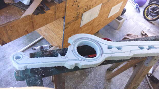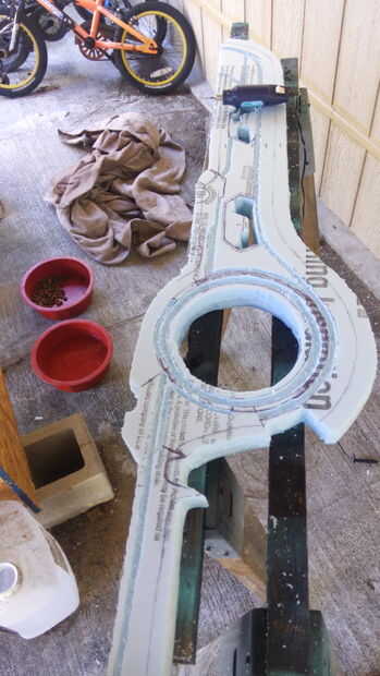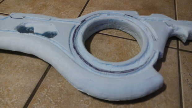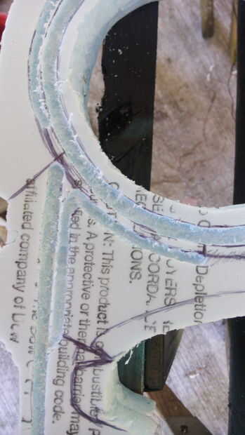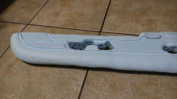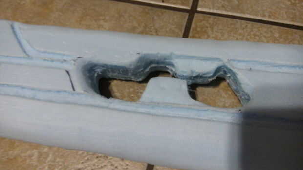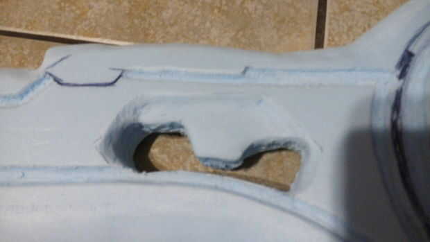 Hay no fácil claro corte forma de hacerlo que no sea sólo va para él. Utilice la herramienta dremel o rotatorio para obtener la forma de todos. El papel de la arena cabeza funciona las mejores para mi. Utilice papel de lija para limpiar todo y alíselo.