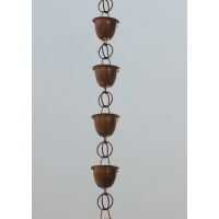 Monarchrainchains puro cobre Sundrop lluvia cadena es 8,5 pies de largo y viene con su propio instalador de cuneta triangular de 4" y la instalación es fácil. La cadena de lluvia Sundrop es uno de nuestros más vendidos vaso mediano lluvia cadenascadenas de lluvia y está vinculado a un conjunto de tazas 27. Cada taza de cobre es 2,5 "X 2,5" y es muy eficiente en la función en las zonas de caída de lluvia moderada. Sin embargo en las zonas de caída de lluvias habrá algunas salpicaduras asociados con este estilo. La cadena de lluvia Sundrop es una cadena de lluvia classic y se presta a cualquier casa de estilo para participar del placer de una cadena de lluvia puede llevar a su casa y conseguir mezmerized por la belleza de los lluvia agua es transportada a lo largo de la cadena de lluvia.