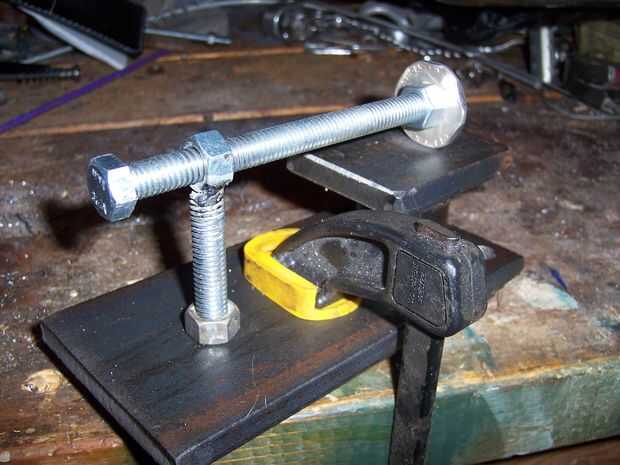 Empezar a golpear ligeramente la moneda en el borde y luego girando la moneda utilizando la tuerca hexagonal como una guía de cómo mucho girar.