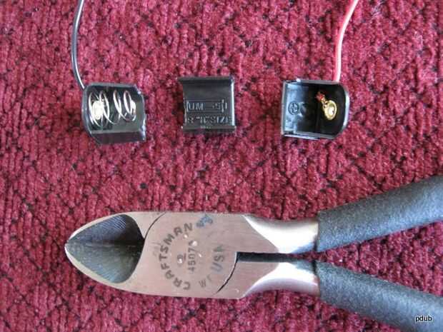 Puede utilizar una sierra dentado fineza pequeño para recortar la parte de soporte de la batería. Si la sierra está en una unidad de almacenamiento de información en algún lugar como el mío es, un conjunto de cortadores de alambre fuerte funciona así. Sólo corta los lados, doblar la espalda base y corte así. Utilicé una herramienta Dremel con una banda de lijado en él para limpiar los bordes y hacerlas rectas. Dejar un poco más con cada corte para permitir este lijado.