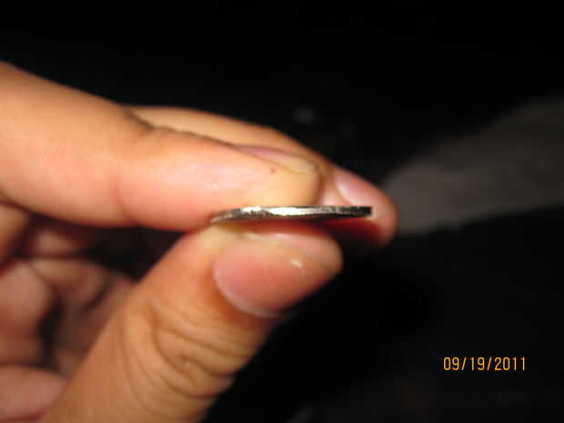 Es posible que observe que no puede conseguir el otro lado de la moneda, para obtener aquellos lados, saque la moneda y poner en la pinza verticalmente en la esquina de la abrazadera.