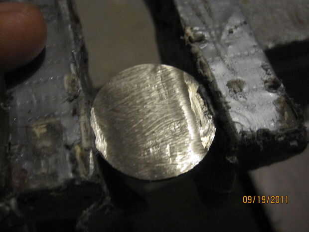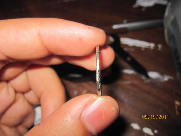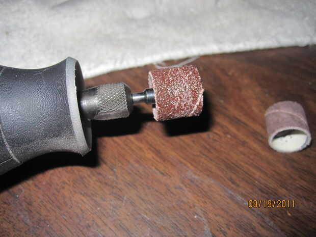 Poner la moneda en la pinza para que quede horizontal y empezar a lijar la cara de él. Asegúrese de que no dejas la dremel en un lugar durante demasiado tiempo o hará una inmersión en la moneda.