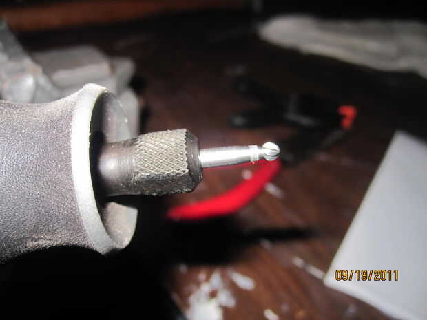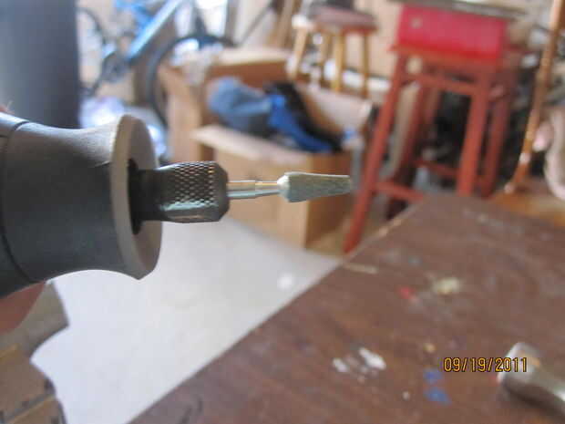 Cuando usted conseguido la profundidad que desee, usted podría notar un montón de marcas de movimiento. Para hacer estos tomar menos notable, el verde punto piedra accesorio cosa (mejor descripción siempre >. >) y la Dremel en 15 y lo alise un poco.