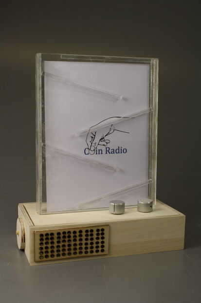 Radio de la moneda es una divertida y emocionante de radio diseñado para niños. Está diseñado como una forma de novedad de interactuar con la radio en comparación con el diseño de la radio tradicional. El niño se inserte una moneda en la parte superior de la radio y ver la moneda desciende hasta el fondo. Al llegar a la parte inferior la moneda encenderá la radio.