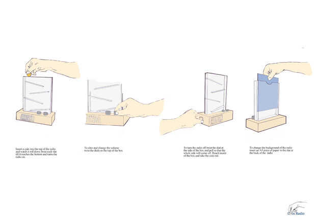 DIY el Radio está diseñado para ser producido y vendido como una unidad de paquete plano, que consta de tres partes. Un módulo de electrónica, el cuerpo principal y una cubierta. Todos estos componentes están diseñados para caber perfectamente juntos