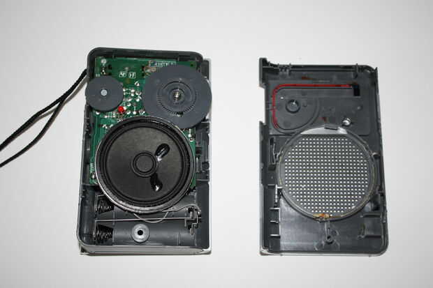 Empezamos este proyecto teniendo un pequeño radio portátil de sony. Simplemente tomando la parte posterior y frente de él izquierda nosotros con los altavoces de la tarjeta de circuitos y ariel. Por el poder es más fácil comprar una pequeña batería caja suitbale para celebrar dos pilas de 1,5 voltios.