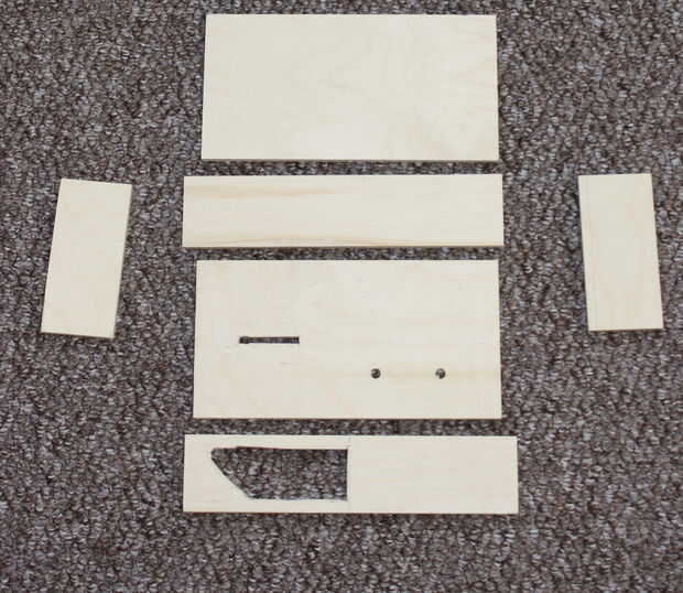 en uno de los (207 x 107) cortar 2 círculos de 6mm y 30 mm aparte y crear una abertura en el lado izquierdo de la madera lo suficientemente grande para una moneda caber a través. Ahora se trata de la parte superior