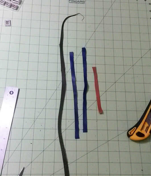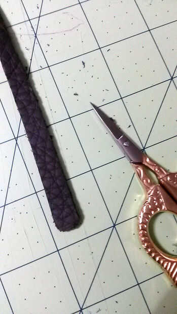 Cortar tiras de cuero. La pulsera que compré tenía una gran tira de cuero, pero no tengo los trozos bastante. Decidí cortar pequeños trozos y juntarlos.