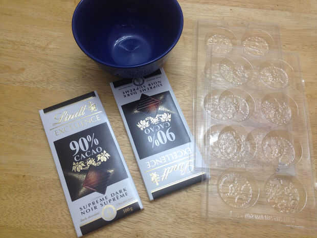 200 Supremo oscuro chocolate, 90% como Lindt (esto hará 8 monedas de chocolate, así que para hacer más, doble chocolate)
