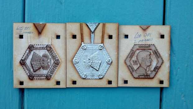 Madera hace un estaño decente material de fundición, pero conseguir que la forma que usted quiera es la parte difícil. Es donde cortadoras láser. He probado un montón de maderas, pero el patrón del grano viene a través de una vez que corta a cualquier profundidad, por lo que necesitamos una madera sin un patrón de grano = MDF! Porque MDF se hace de polvo esencialmente madera Unión junto, imparte mucho menos de su propio patrón en el láser de grabado. Además es bastante barato - usar algunas cosas de espesor 3mm que compré en casa Depot para $15 por 4 pies por 8 pies de hoja, que será suficiente para por lo menos 64 moldes del tamaño que hice. (Probablemente puede utilizar tablero mate o la densa cartón obtendrá en la parte posterior de las almohadillas de papel, pero yo no puedo dar fe de la durabilidad de los moldes resultantes). También he intentado acrílico para los moldes, pero el estaño no parece que les gusta estar a su lado y la superficie del fundido es todo ripply, también el molde empieza a deformarse con el calor.