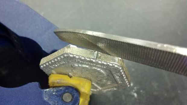 OK, es hora de cortar el embudo y respiraderos, luego presentar la descarga nubs. También querrá volver a frotar con lana de acero fino para traer para arriba la superficie de un destello. Como se puede ver, textured la superficie del estaño, que parece ser sólo una característica de este proceso y se añade carácter. Si usted necesita superficies planas super suaves, podría tener que encontrar otro método.