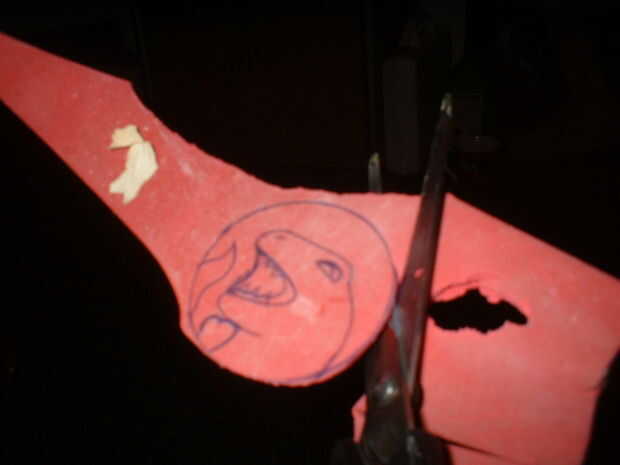 pueden ser bastante caros en ebay o de otras fuentes y si sólo para traje de desgaste en su banda entonces esto es lo más más barato hacer uno.se necesita cartulina, cellotape, pinturas y tijeras para crearlo.entonces necesita pinturas rojas y negras