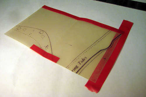 acercar a conocer A. B Estos deben estar alineados en sus esquinas inferiores, con un boquete pequeño (~ 1mm) hasta el borde con cinta. Rub a pegar hacia abajo.