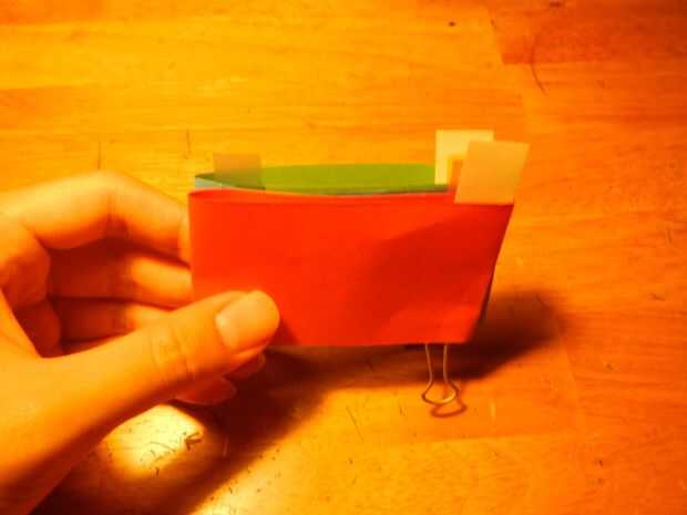 Este es el último bit de la costura, yay! Puntada desde el extremo del lazo verde hasta el final del lazo rojo, como se indica por el poste blanco su. Usted debe coser a través de 3 capas (cada uno de rojo, azul y verde). Si has hecho esto correctamente las puntadas sólo debe podemos ser visto por los lados.