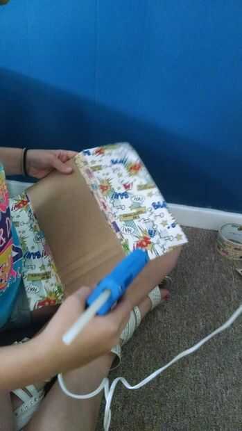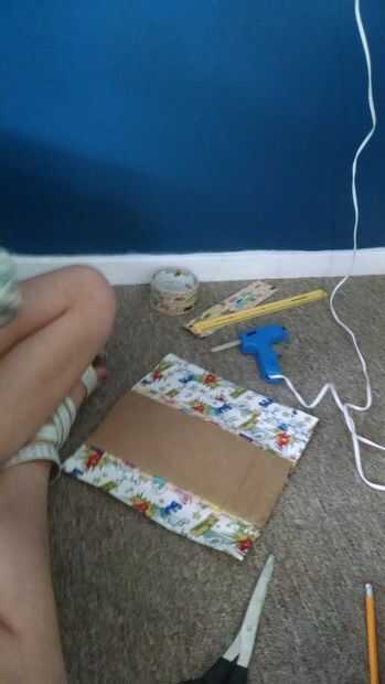 5. vas a tomar otro 25 cm a cada lado y cada lado de 5 o 6 veces y van a poner cinta pato en las esquinas de cada lado. Ahora el velcro y pegamento caliente en el bolsillo así que usted puede abrir y cerrar la bolsa. Ahora toma 40 cm de pato cinta y dobla por la mitad, por lo que tiene el mango y hacer el paso una vez más