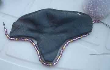 decidí añadir un poco de granos para la chispa y hacer un borde limpio, ya que será coser por fuera como un pedazo de apliques. El borde superior de la "T" será doblado en el interior de la bolsa y cose el borde largo, con el fin de hacer un túnel o bolsillo para las secuencias del monedero.