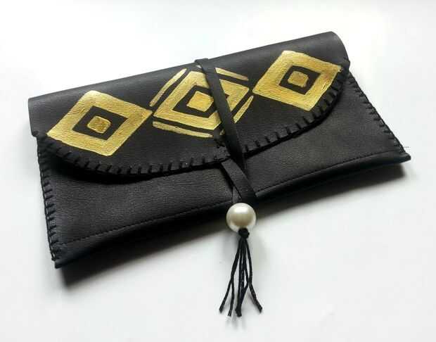 Este es mi primer intento en la fabricación de un bolso de cuero, bien creo que el que usé es más bien una imitación de cuero. He hecho este bolso con cuero del faux de la chatarra tenían en stock por un tiempo pero no sabía qué hacer con él. Con poco diseño de oro y un grano de la perla para el cierre, la bolsa se ve muy bien.