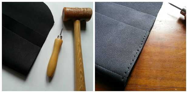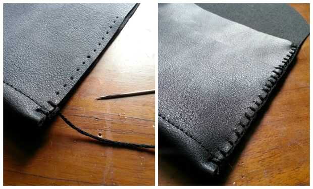 Usar cera o hilo de rosca grueso y una aguja grande para coser los lados, plana puntadas de manta.