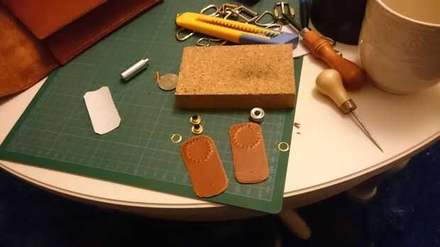 Medido y perfora un agujero con una perforadora y establecer el botón snap.
