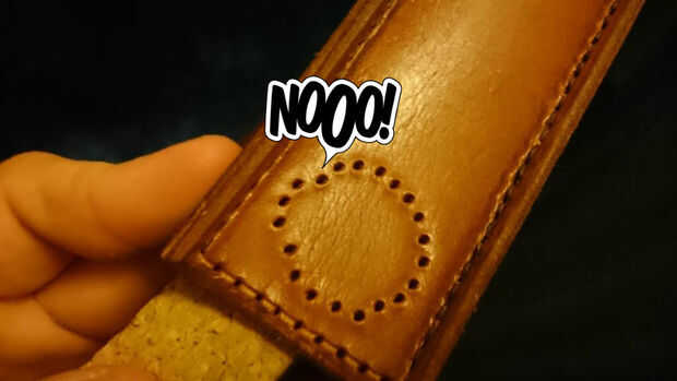 Pequeños pedazos fueron cosidos en los lados de la bolsa para sujetar la correa. Tienen ojales para que la correa se puede cambiar a otro si es necesario.