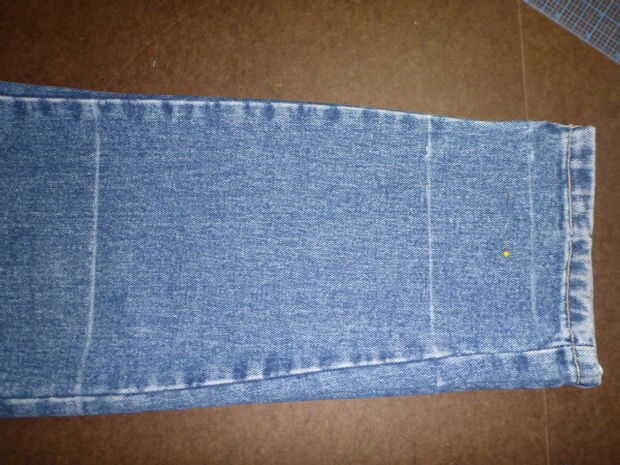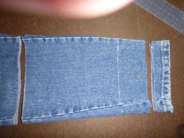 Marcar los pantalones donde desea cortar.  He marcado la parte de monedero 8 1/2" y la parte inferior de la porción 2 1/2".  Sección de corte en las líneas.