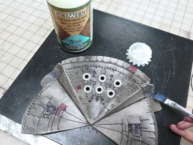 Luego aplica pegamento alrededor de los bordes de la parte inferior de los bolsillos y los bordes de la parte superior de las piezas de cuerpo y pegado juntos, asegurándose de que alinean correctamente.