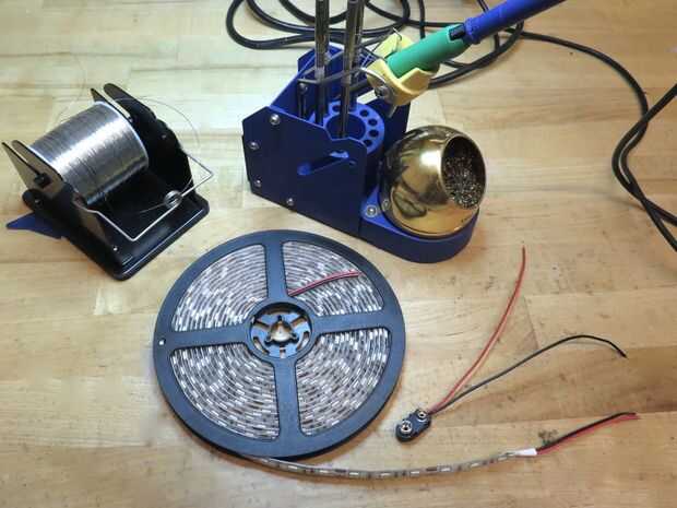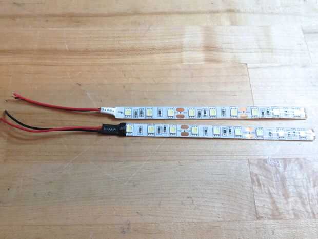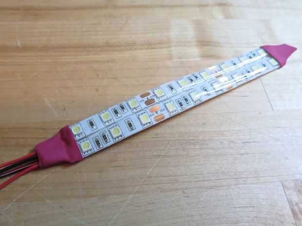Solía de encogimiento de calor y un poco de pegamento en ambos extremos de las tiras led para mantenerlos paralelos a unos de otros.