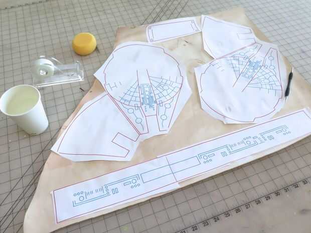 Arreglé mis piezas en cuero, con tachuelas en unos pocos lugares con cinta. Utilicé un bolígrafo stylus de modelado para trazar todos mis líneas de corte, líneas de costura y las líneas de detalle a través de en la piel. A continuación retirar las piezas del patrón y cortar aproximadamente cada pieza de cuero dejando un pequeño espacio alrededor de los bordes.