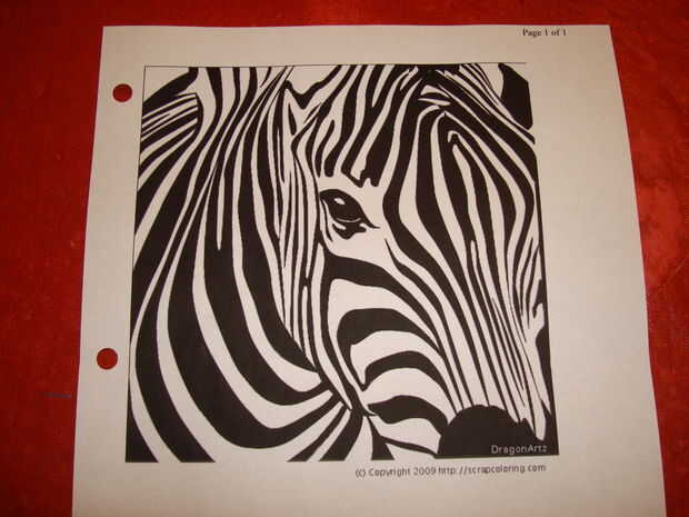 Encontrar un cuadro de cebra te gusta en línea o visite el enlace que proporcioné e imprimir una copia allí. Si usted imprime uno allí, desplácese hacia abajo hasta el cuadro 2 porque es imprimible pero haga clic en la imagen para hacerla más grande o se obtendrá una pequeña imagen. Imprimir una foto y si todo es lo que guste y luego imprime más copias. Pensé esto parece real lindo con una foto de la culata de las cebras en la parte posterior de la misma y hacer una cola de seda trenzada del bordado. No hacerlo porque la calidad de la imagen de esta foto no fue muy buena. Yo solía pixar para editar una foto y no resultó muy bien.