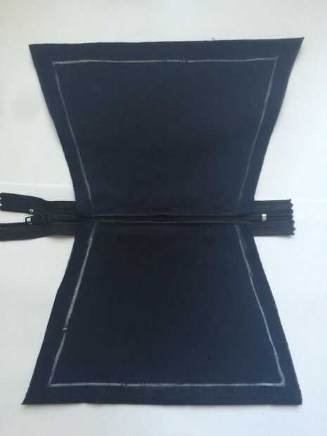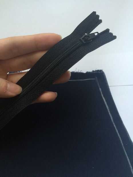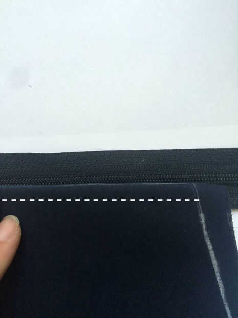 Opté por usar una cremallera negro pero blanco también funciona :) Coloque la cremallera un poco por debajo de la tela y coser. Luego doble a la tela y coser otra vez. Repita este paso para el otro lado.