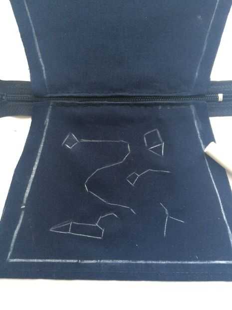 Yo busqué el estrellas mapa y dibujar sobre el papel y dibujarlos en el fabic usando la tiza. No tienes que dibujarlos exactamente lo mismo. Esto es opcional :)