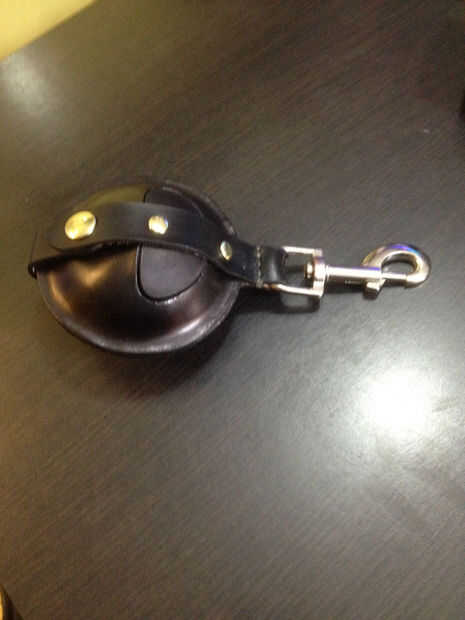 Tomar la medida de una cadena de cuero con el lugar del mosquetón, es importante que todo debe ser muy firme y precisa si quieres cerca y fácil abrir la puerta. Utilicé 4 Trencin y 1 Haga clic en el botón.