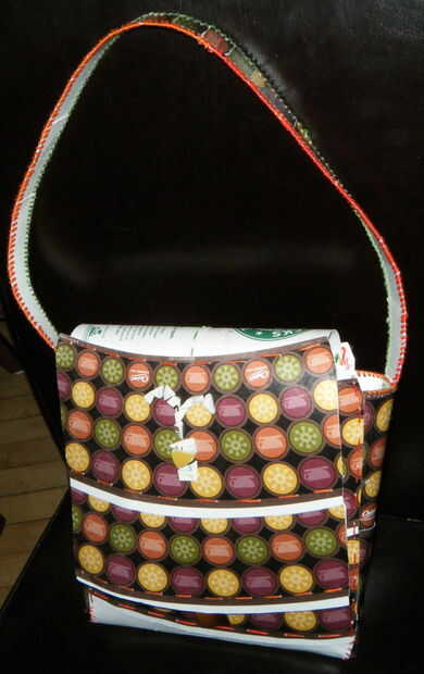 este bolso está hecho enteramente de tazas de café cerámica y papel. Era enteramente mano cosida, con un poco de pegamento caliente. (Dios el tiempo que pasé, realmente im sólo perezoso). por favor, por favor, disfrutar. (por favor).