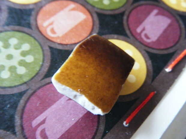 primero se debe coser un botón en la parte delantera de la bolsa de decidir a dónde poner por donde es la parte inferior de la aleta. cose en el. Esto es opcional pero ir a buscar o romper la taza de café de cerámica. Tenga cuidado que este paso implicó algunos cortes porque uno no cerámica y tipo de sopló sobre mí. Toma pedazo de copa y pegar el botón después de COSERLO en. luego coloque un lazo del pelo u otra cosa de la cuerda elástica con pegamento. Asegúrese de que puede estirar sobre el botón.