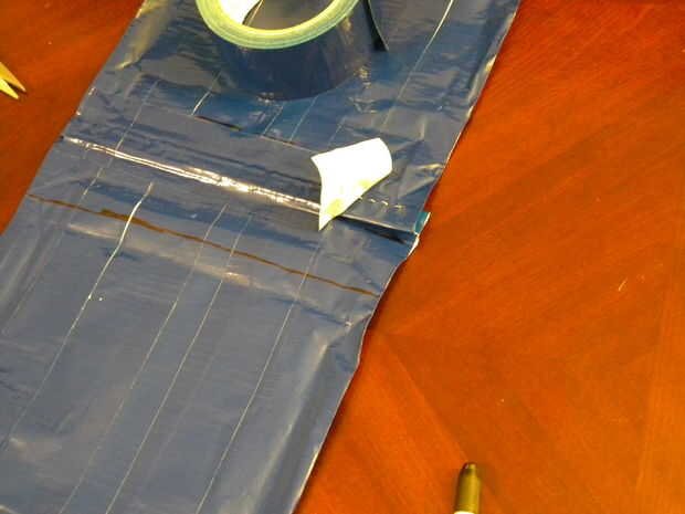 Traslape de la cinta sólo un poco cada vez. Veces los dos juntos se parece así que el doblez adentro en sí mismo. (como se ve en el video) El lado de la cinta realizando no será visible al final por lo que pequeños errores no son gran cosa. Uso de la grapadora para grapar los bordes bajo el pliegue y luego se pliegan y básico otra vez.