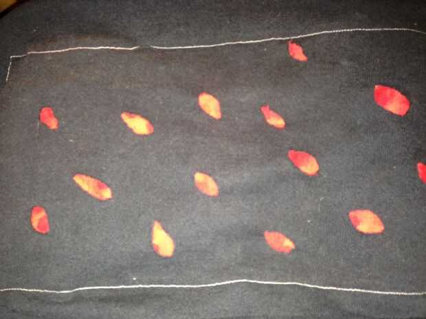 Desde la parte posterior de la camisa tenía pequeños agujeros de todos modos, decidí jugar con ello. Encontré un trozo de tela sobrante de otro proyecto y cortar un poco más pequeño que la parte posterior de la bolsa. El revés del bolso y me cubrió a la tela cosida alrededor del borde y lateral para el material de la camiseta (por lo que se mostraría el lado derecho cuando hice los agujeros en el material de la camiseta). Luego cuidadosamente corté slash-agujeros en el material del buzo, teniendo cuidado de no para cortar a la tela de forro. He visto bolsos en el centro comercial con un adorno similar para más de $30. Pude recrear la mirada con materiales encontrados y a unos 15 minutos de tiempo.