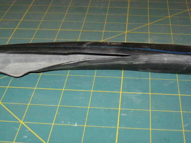El primer paso, después de la adquisición de un tubo, es cortar longitudinalmente. Después de hacerlo, el siguiente paso es cortar el tubo a la longitud. Usé mi billetera vieja como guía mientras hace esto.