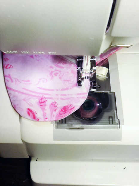 Presione el cuidado de sacar la curva en forma de corazón. cuidadosamente puede utilizar un pin para trabajar a cualquier parte "plana" de la curva si Deslice el pasador en la costura inferior de 1/4" y el pin para sacar la costura hasta el borde más exterior del ángulo. Este truco necesita un poco de práctica. Trabajar con cuidado, es posible hacer un agujero, si no tiene cuidado.