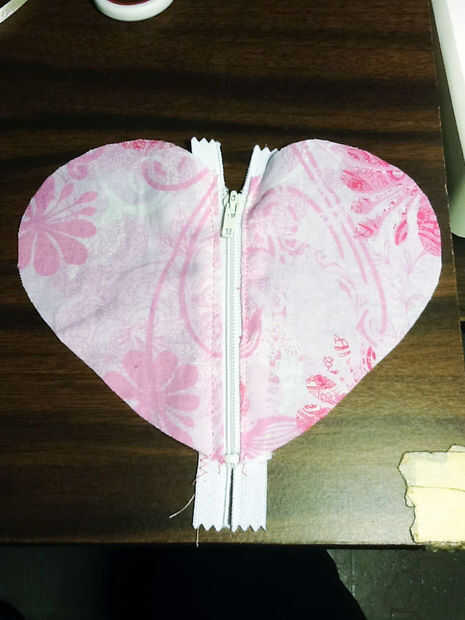 Prender la cremallera al lado opuesto del corazón y coser a repetir los pasos anteriores.