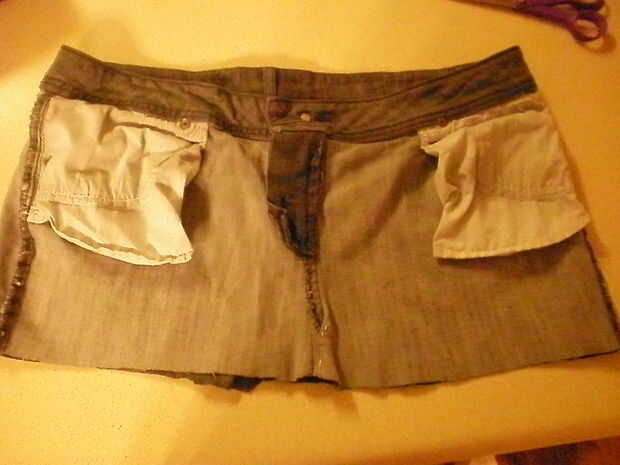 el bolso fue creada de una mitad de la parte superior de los pantalones vaqueros que se utilizaron para el jardín Jean Cap anteriormente publicada. Cortar el bolsillo de la otra mitad a coser como una bolsa en los bordes del interior de la cremaller