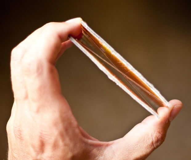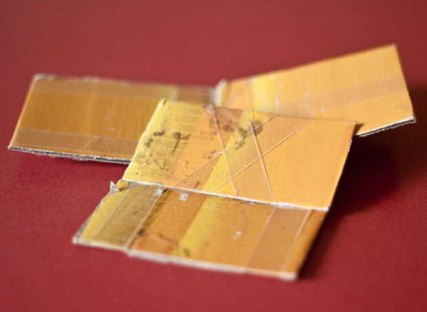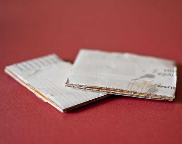 Se puede ver la forma impar que la cinta mantiene juntas las placas de cartón, pero también permite la apertura de la cartera.